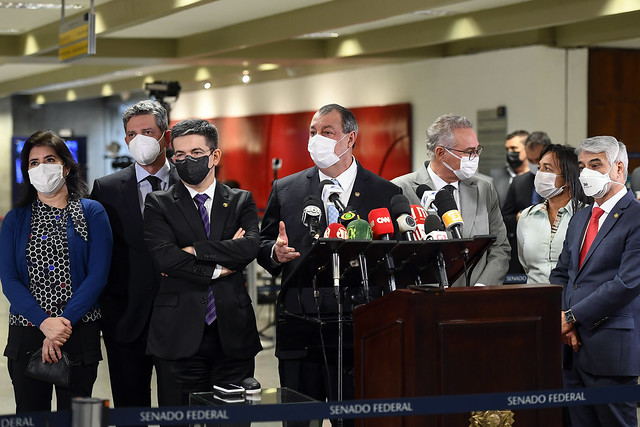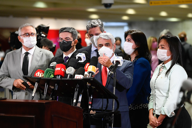 Senadores integrantes da CPI da Pandemia conversam com a imprensa sobre as ações da comissão.