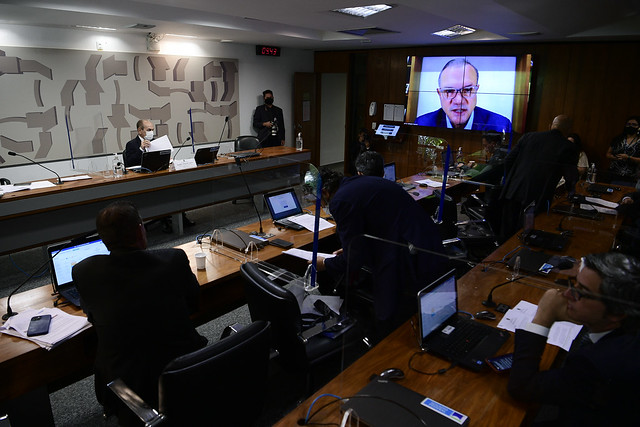 Ao lado de ex-ministros do Meio Ambiente e do senador Randolfe Rodrigues (Rede-AP), o presidente do Senado Federal, senador Rodrigo Pacheco (PSD-MG), fala sobre as propostas apresentadas para o setor, como mineração em terras indígenas e liberação de agrotóxicos.