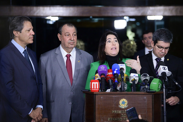 Presidente do Senado Federal e líderes de bancada reúnem-se com o ministro da Fazenda e a ministra do Planejamento e Orçamento.