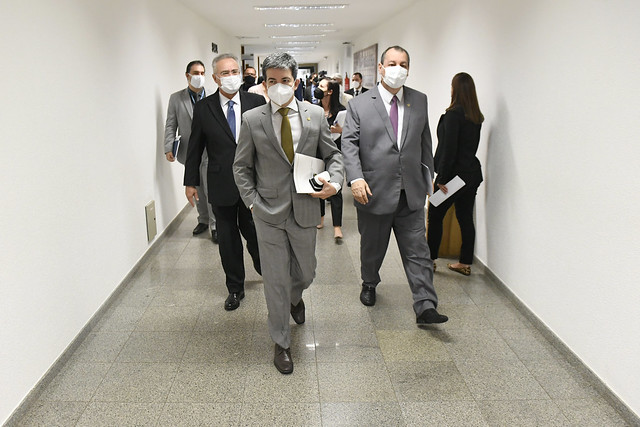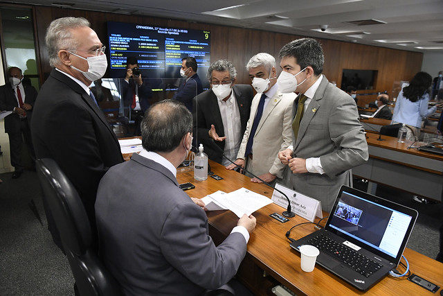 Comissão Parlamentar de Inquérito da Pandemia (CPIPANDEMIA) suspende oitiva de empresário suspeito de integrar um grupo de aconselhamento ao presidente da República em assuntos relacionados à pandemia de covid-19. O empresário não compareceu e alegou estar nos Estados Unidos.
