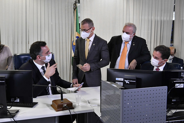 Sessão Deliberativa Remota (SDR) do Senado Federal realizada a partir da sala de controle da Secretaria de Tecnologia da Informação (Prodasen).