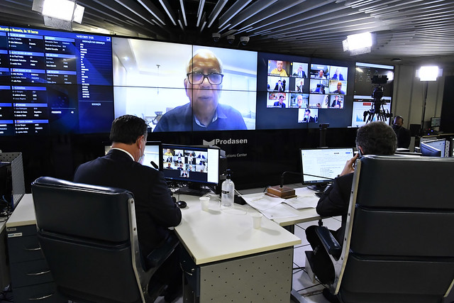 Sessão Deliberativa Remota (SDR) do Senado Federal realizada a partir da sala de controle da Secretaria de Tecnologia da Informação (Prodasen).