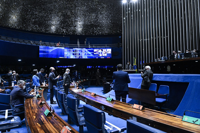Plenário do Senado Federal durante sessão deliberativa ordinária semipresencial.