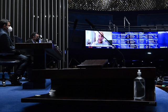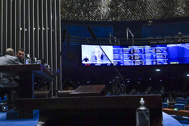 Plenário do Senado Federal durante sessão deliberativa ordinária semipresencial.