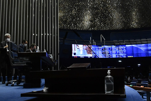 Plenário do Senado Federal durante sessão deliberativa ordinária semipresencial.