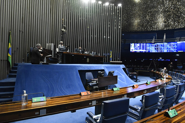 Plenário do Senado Federal durante sessão deliberativa ordinária semipresencial.