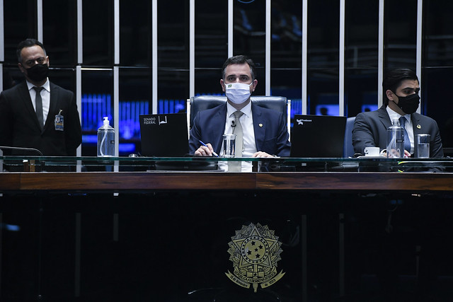 Plenário do Senado Federal durante sessão deliberativa ordinária semipresencial. Ordem do dia.