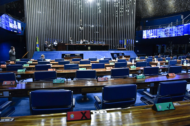 Plenário do Senado Federal durante sessão deliberativa ordinária semipresencial.