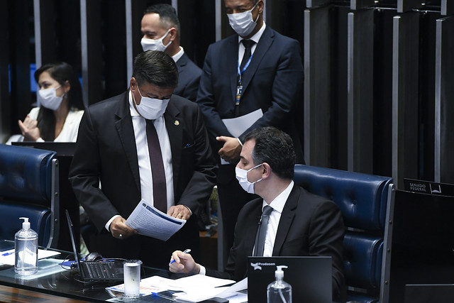 Presidente do Senado Federal, senador Rodrigo Pacheco (DEM-MG), conversa com jornalistas sobre as atividades legislativas.