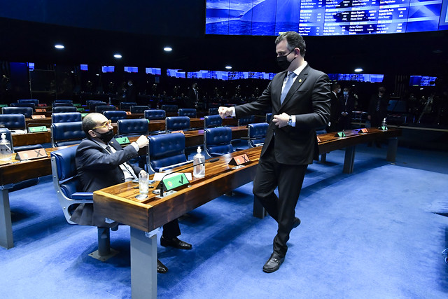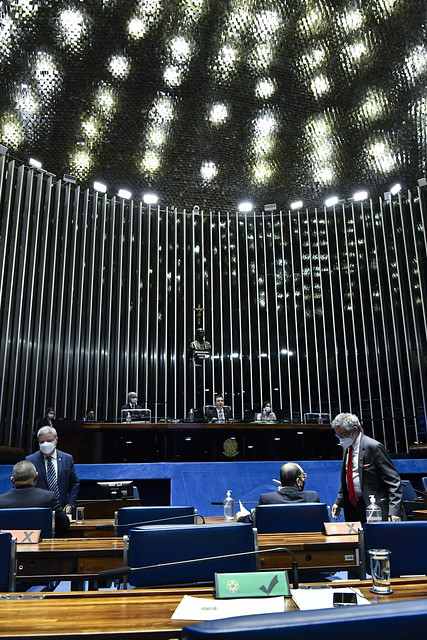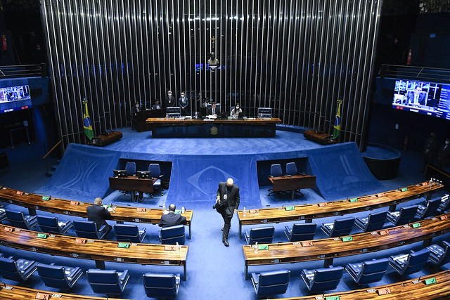 Plenário do Senado Federal durante sessão deliberativa ordinária semipresencial.