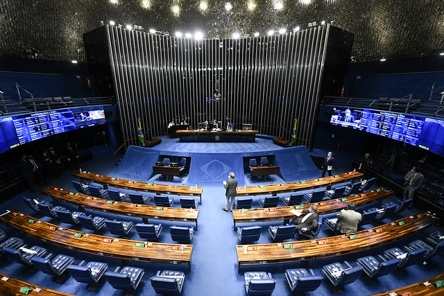 Plenário do Senado Federal durante sessão deliberativa ordinária semipresencial.