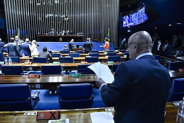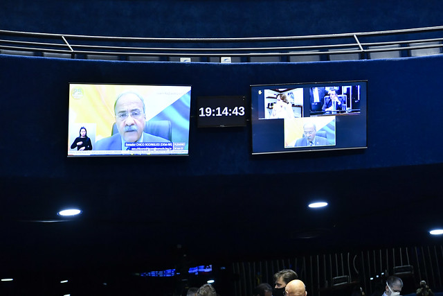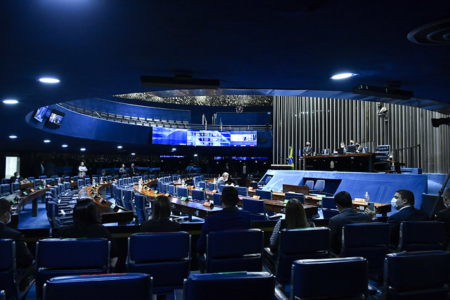 Plenário do Senado Federal durante sessão deliberativa ordinária semipresencial.