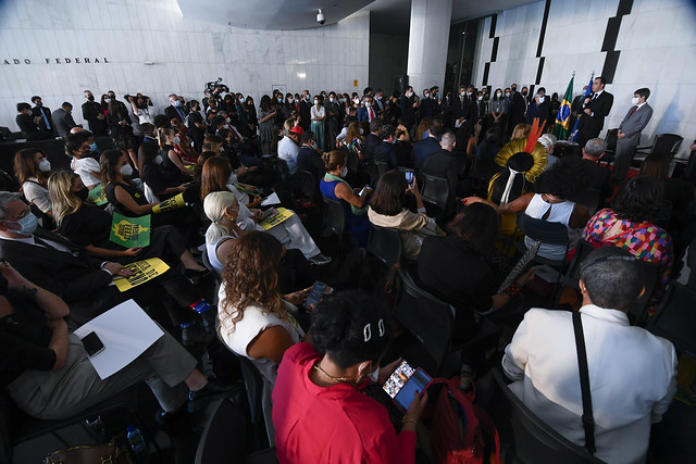 Presidente do Senado Federal realiza audiência no Salão Negro para receber o Movimento 342 Amazônia, parlamentares e um grupo de artistas. O objetivo é discutir projetos de lei que podem impactar o meio ambiente, como as propostas que facilitam a mineração em terras indígenas, e que flexibilizam as regras de licenciamento e a ampliação do número de agrotóxicos no Brasil.