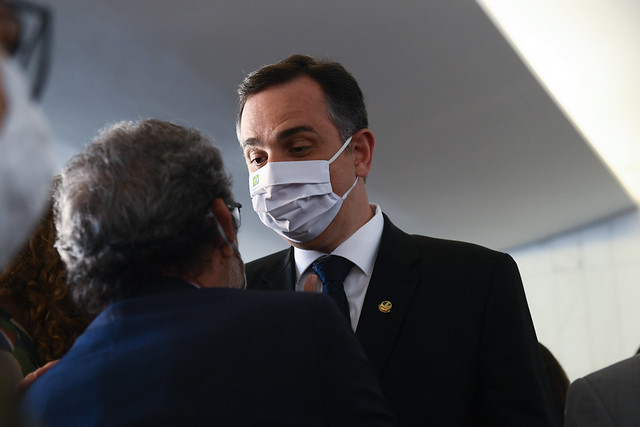 Presidente do Senado Federal, senador Rodrigo Pacheco (PSD-MG), concede entrevista.