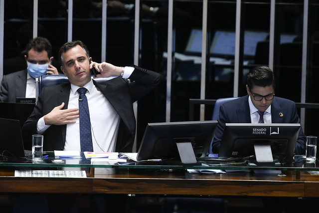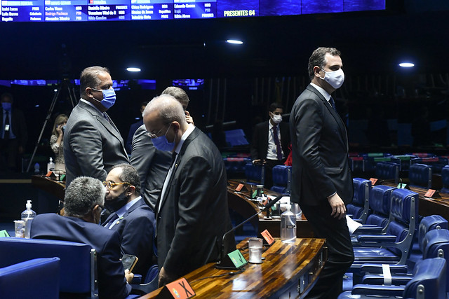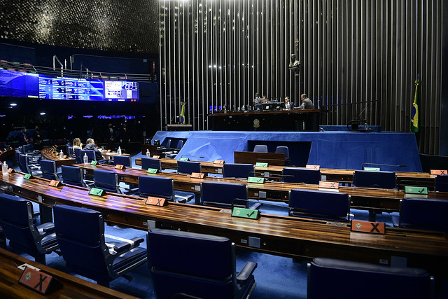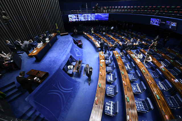 Plenário do Senado Federal durante sessão deliberativa extraordinária semipresencial.