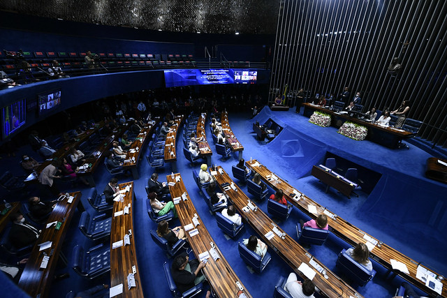 Plenário do Senado Federal durante sessão deliberativa ordinária semipresencial.