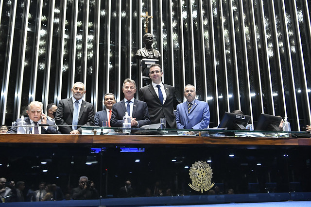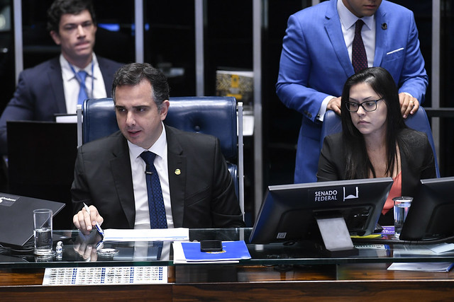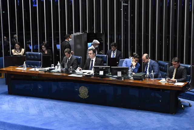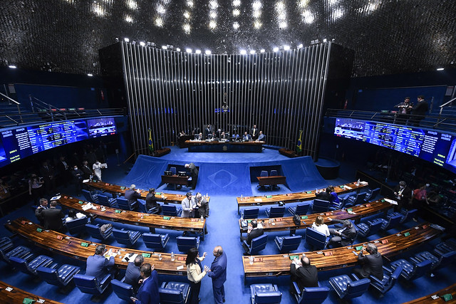 Plenário do Senado Federal durante sessão deliberativa ordinária semipresencial.