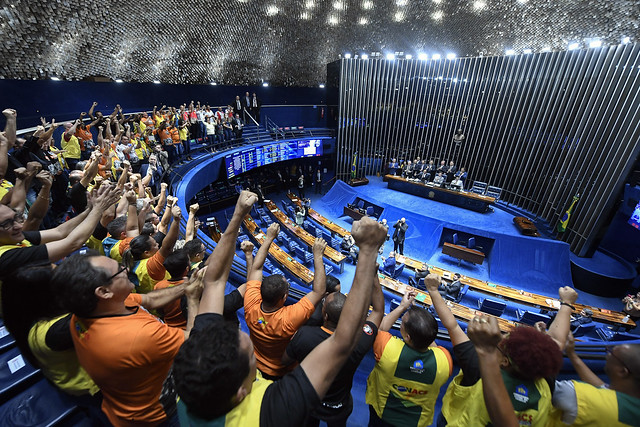 Plenário do Senado Federal durante sessão deliberativa ordinária semipresencial.