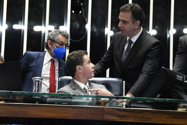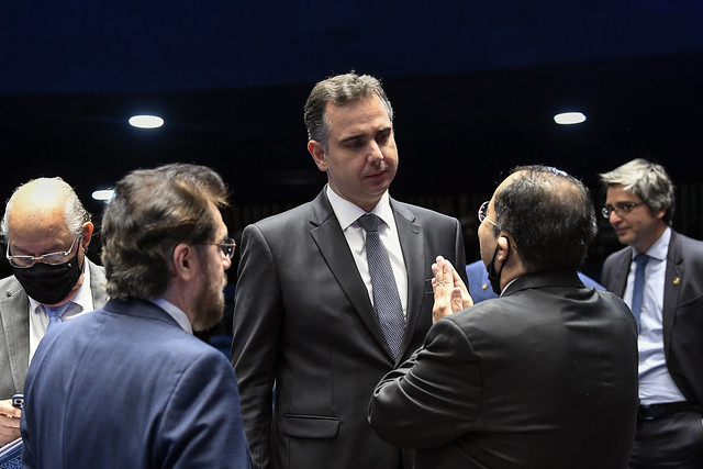 Presidente do Senado Federal, senador Rodrigo Pacheco (PSD-MG), concede entrevista antes de abrir a sessão deliberativa. Ele fala sobre relação entre Poderes, eleições, reforma tributária e mais.