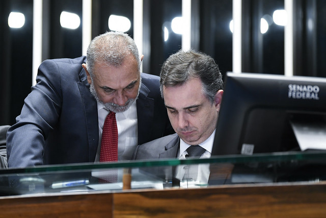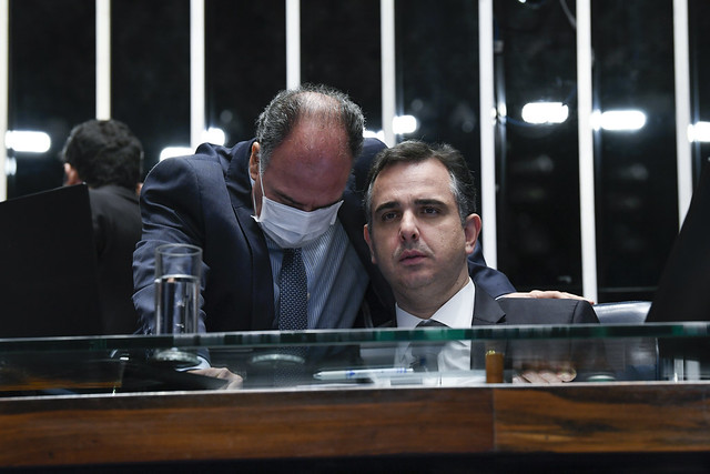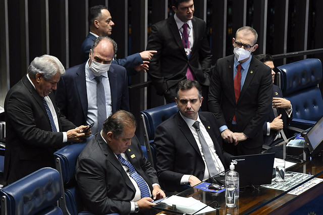 Plenário do Senado Federal durante sessão solene semipresencial do Congresso Nacional destinada à promulgação da Emenda Constitucional 121/2022, que garante benefícios tributários a empresas de tecnologia da informação e comunicação e de semicondutores.