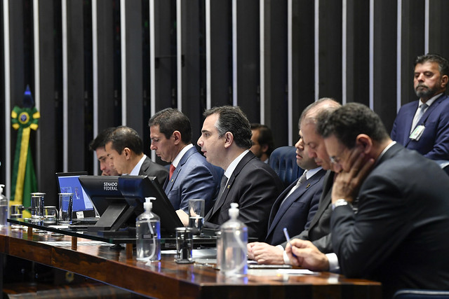 Plenário do Senado Federal durante sessão deliberativa ordinária semipresencial.