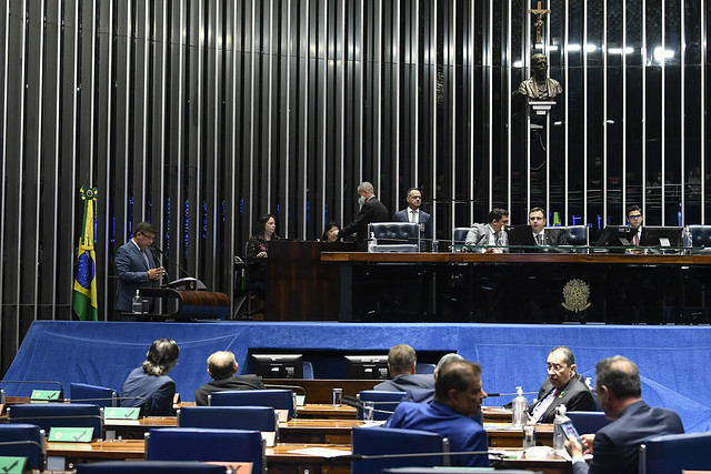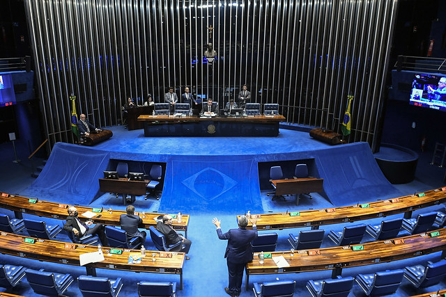 Plenário do Senado Federal durante sessão deliberativa ordinária semipresencial.