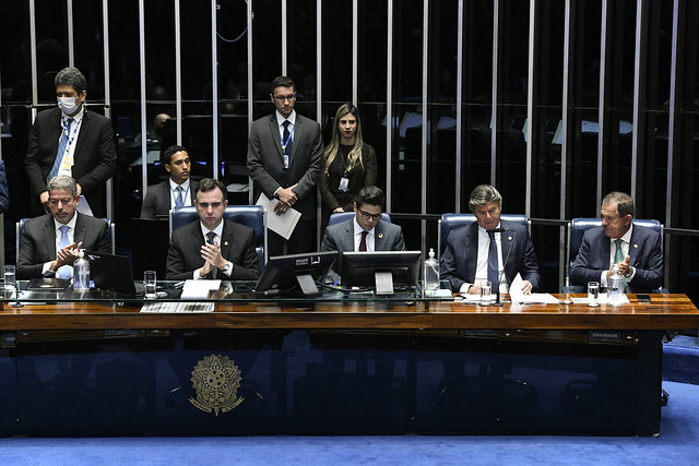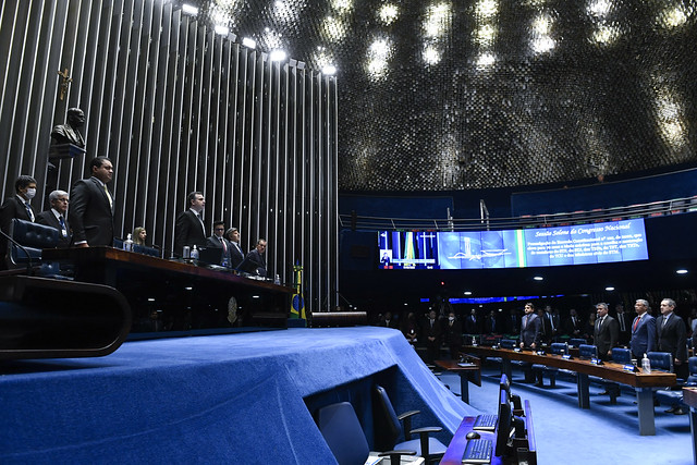 Plenário do Senado Federal durante sessão solene semipresencial do Congresso Nacional destinada à promulgação da Emenda Constitucional 122/2021, que aumenta o limite de idade para indicação de ministros de tribunais superiores e juízes de segunda instância. O limite passa dos atuais 65 para 70 anos de idade.