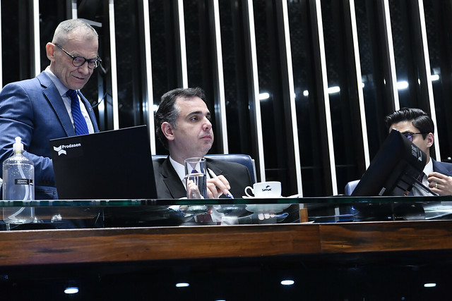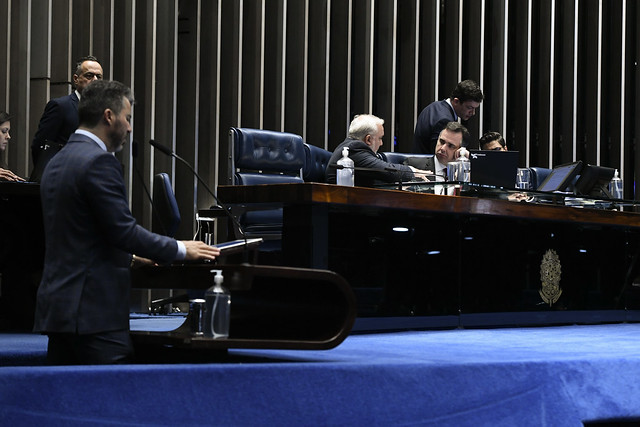 Plenário do Senado Federal durante sessão deliberativa ordinária semipresencial.