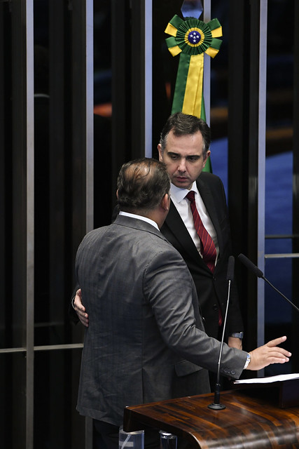 Presidente do Senado, senador Rodrigo Pacheco (PSD-MG), concede entrevista.