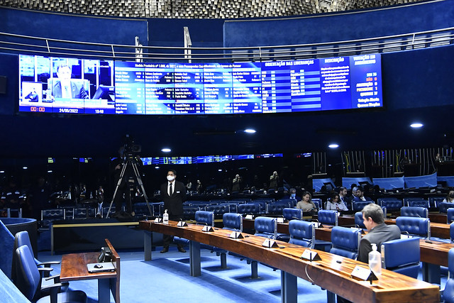 Plenário do Senado Federal durante sessão deliberativa ordinária semipresencial.