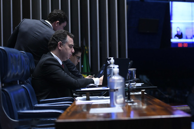 Plenário do Senado Federal durante sessão deliberativa extraordinária semipresencial.