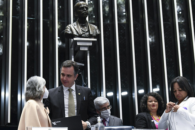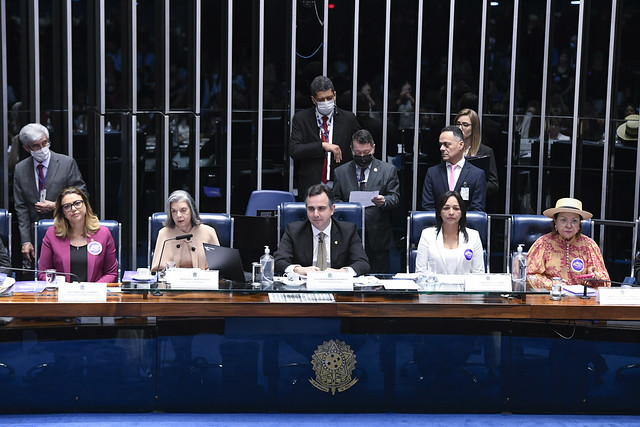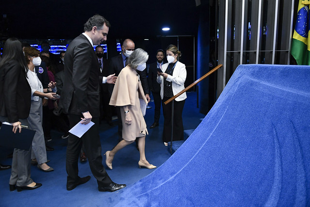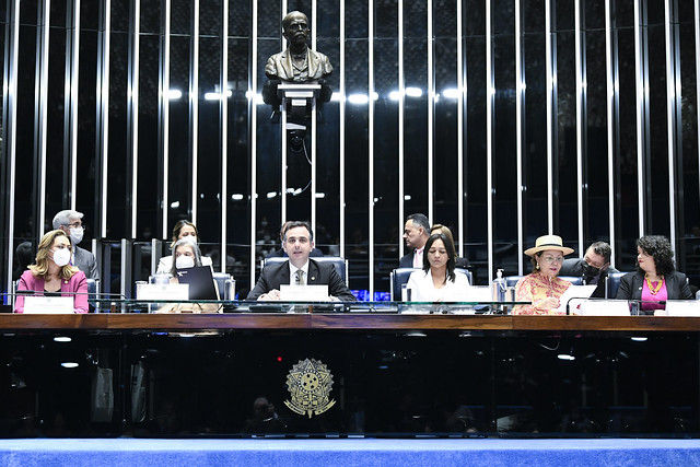 Plenário do Senado Federal durante sessão especial semipresencial.