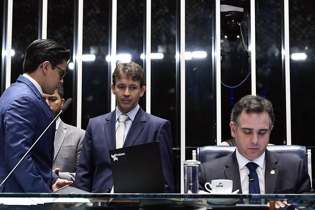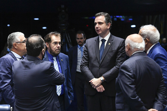 Presidente do Senado Federal, senador Rodrigo Pacheco (PSD-MG), fala aos jornalistas sobre as atividades legislativas.