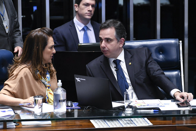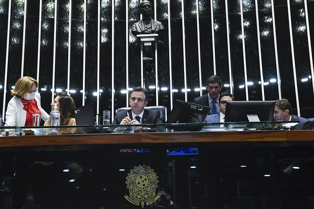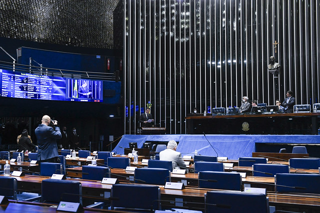 Plenário do Senado Federal durante sessão deliberativa ordinária semipresencial.