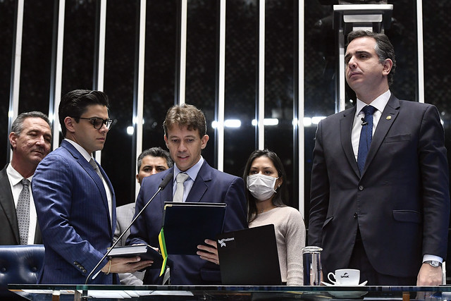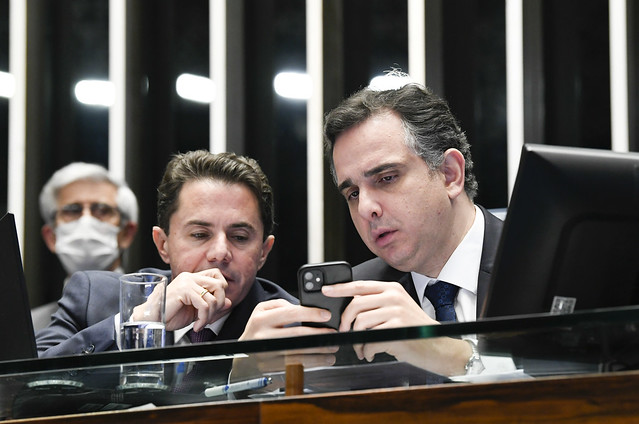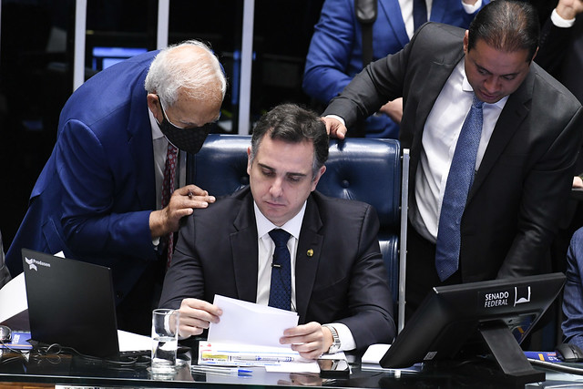Presidente do Senado Federal, senador Rodrigo Pacheco (PSD-MG), concede entrevista coletiva.