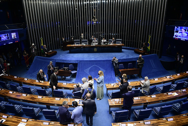 Plenário do Senado Federal durante sessão deliberativa ordinária semipresencial.