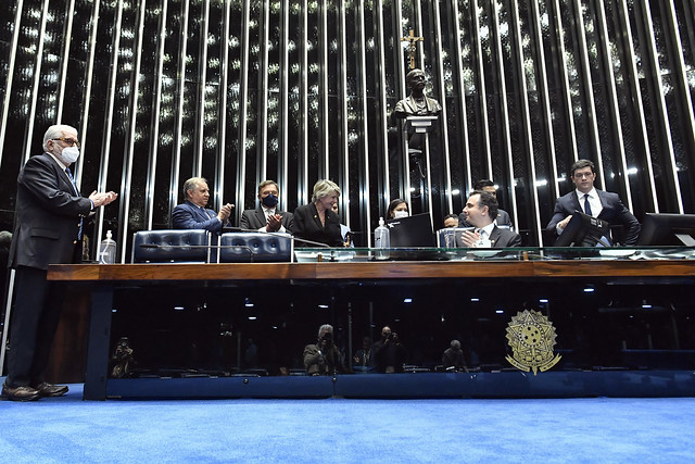 Plenário do Senado Federal durante sessão deliberativa ordinária semipresencial. Ordem do dia.