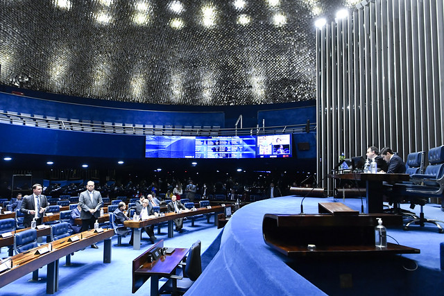 Plenário do Senado Federal durante sessão deliberativa extraordinária semipresencial.