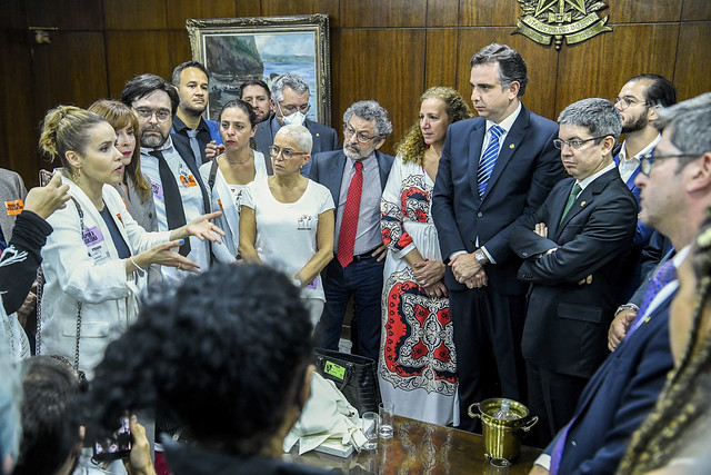 Presidente do Senado Federal, senador Rodrigo Pacheco (PSD-MG), recebe artistas, secretários e parlamentares favoráveis a derrubada dos vetos às leis da Cultura (Lei Aldir Blanc 2 e Lei Paulo Gustavo).