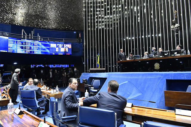 Plenário do Senado Federal durante sessão deliberativa ordinária semipresencial.