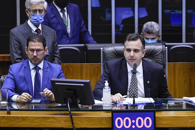 Presidente do Senado, senador Rodrigo Pacheco (PSD-MG), concede entrevista coletiva.