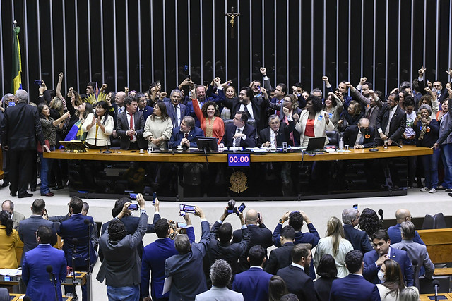 Plenário da Câmara dos Deputados durante sessão conjunta do Congresso Nacional destinada à deliberação de vetos.