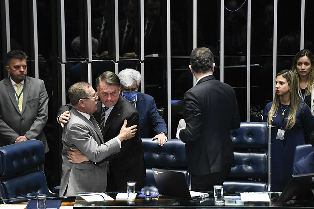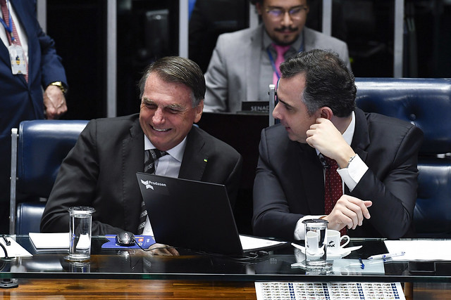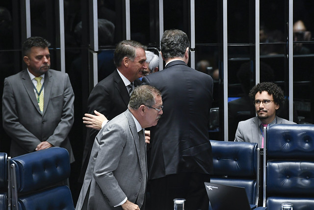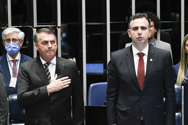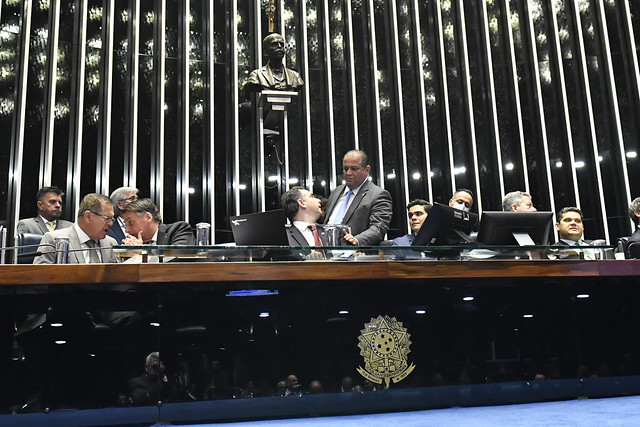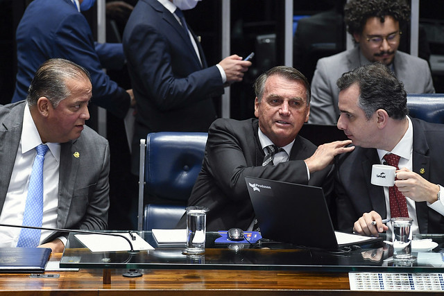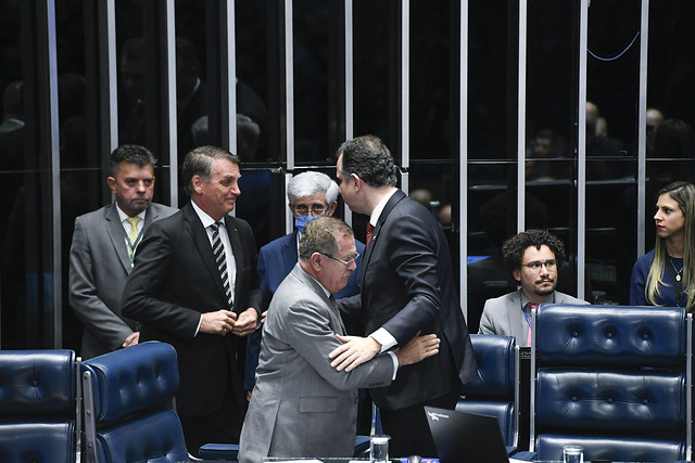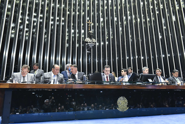 Plenário do Senado Federal durante sessão solene semipresencial do Congresso Nacional destinada à promulgação da Emenda Constitucional nº 123, referente à Proposta de Emenda à Constituição nº 1 e 15, de 2022, apensadas, que possibilitará ao governo gastar por fora do teto de gastos mais R$ 41,25 bilhões até o fim do ano para aumentar benefícios sociais, conceder ajuda financeira a caminhoneiros e taxistas, ampliar a compra de alimentos para pessoas de baixa renda e diminuir tributos do etanol; à promulgação da Emenda Constitucional nº 124, referente à PEC 11, de 2022, que institui o piso salarial nacional do enfermeiro, do técnico de enfermagem, do auxiliar de enfermagem e da parteira; e à promulgação da Emenda Constitucional n° 125, que "altera o art. 105 da Constituição Federal para instituir no recurso especial o requisito da relevância das questões de direito federal infraconstitucional".