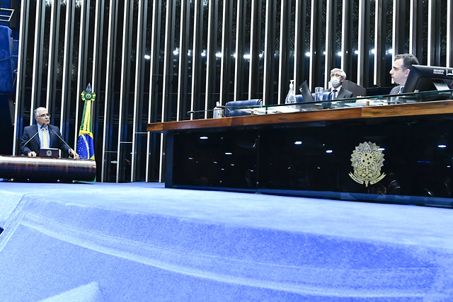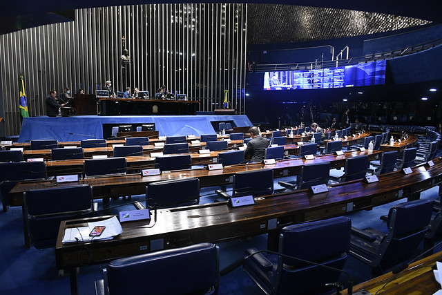 Plenário do Senado Federal durante sessão deliberativa ordinária semipresencial.