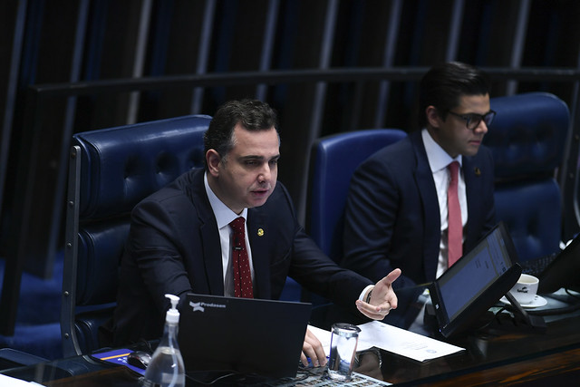 Plenário do Senado Federal durante sessão deliberativa ordinária semipresencial.