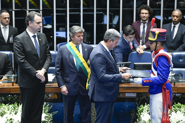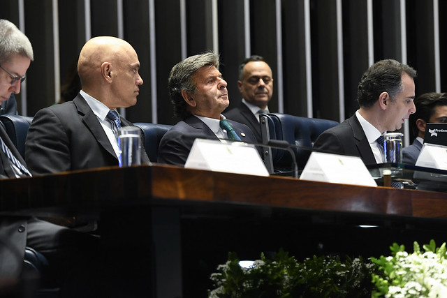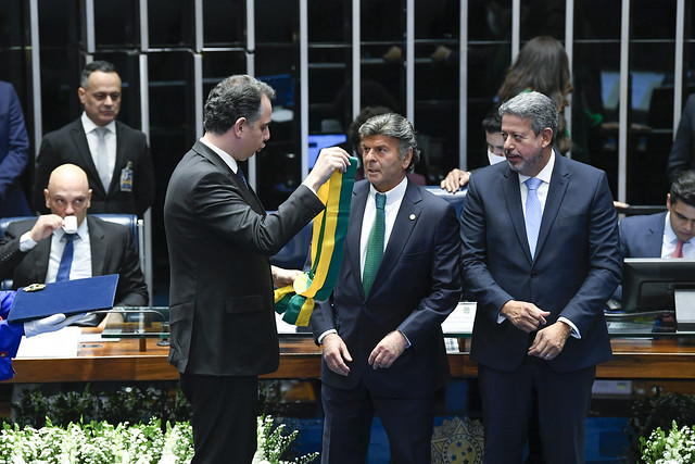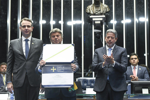 Plenário do Senado Federal durante sessão solene destinada à entrega da condecoração da Ordem do Congresso Nacional ao ministro do Supremo Tribunal Federal (STF), Luiz Fux, pelo período em que esteve na presidência da Corte (setembro de 2020 a setembro de 2022).