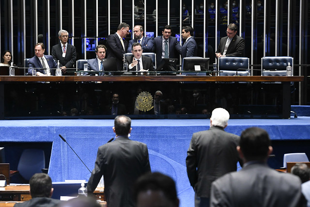 Plenário do Senado Federal durante sessão deliberativa ordinária semipresencial.