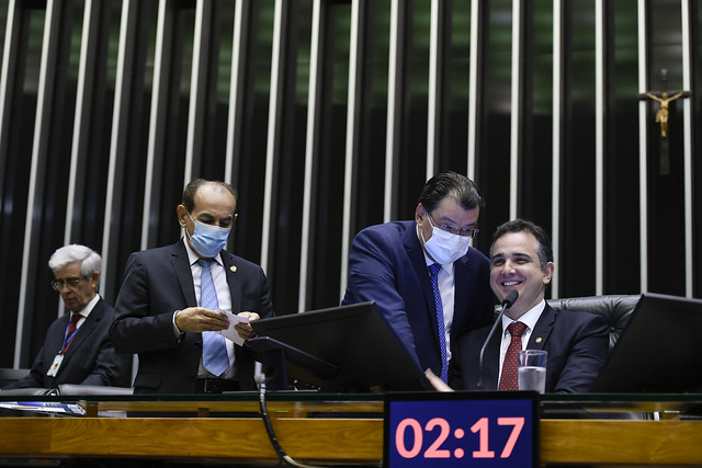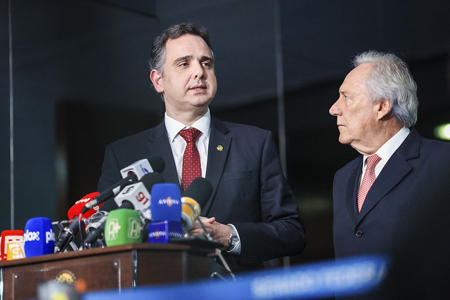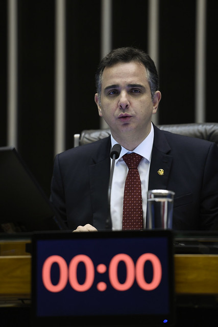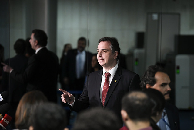 O presidente do Senado Federal, senador Rodrigo Pacheco (PSD-MG), concede entrevista após sessão do Congresso Nacional