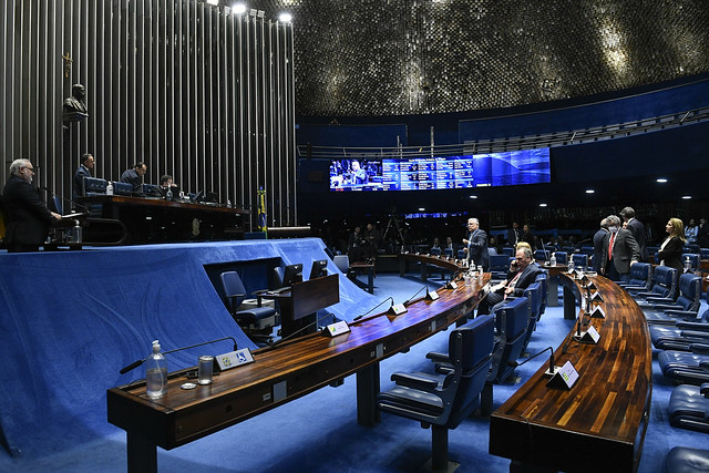 Plenário do Senado Federal durante sessão deliberativa ordinária semipresencial. Ordem do dia.
