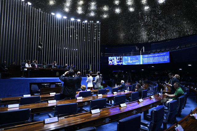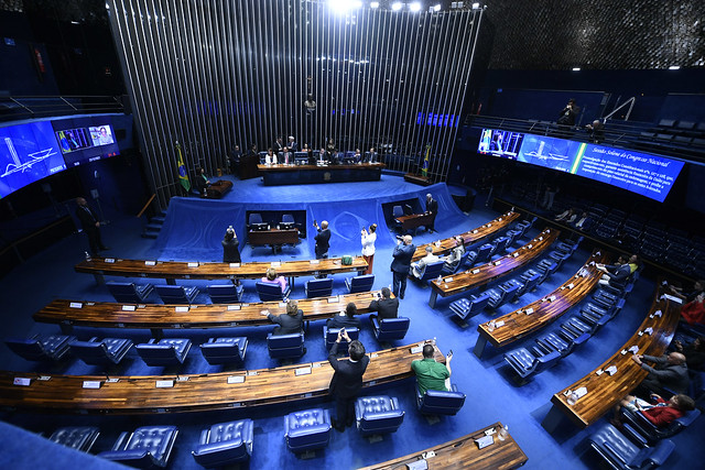 Plenário do Senado Federal durante sessão solene semipresencial do Congresso Nacional para promulgar as Emendas Constitucionais 127 e 128 de 2022.